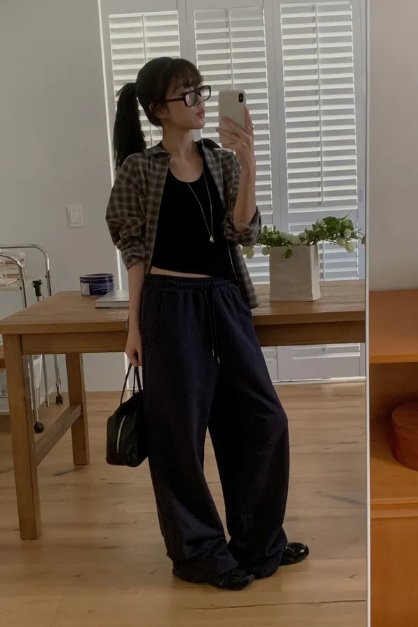 落地x束口抽繩寬褲