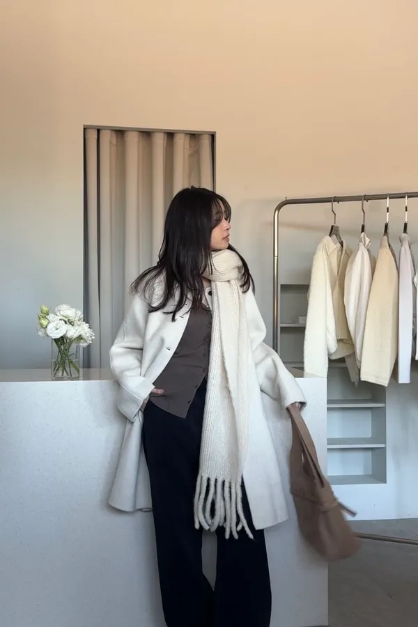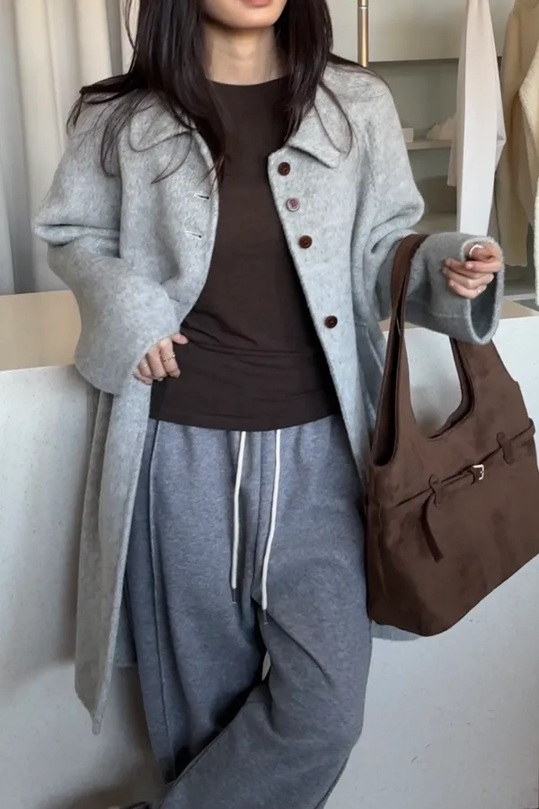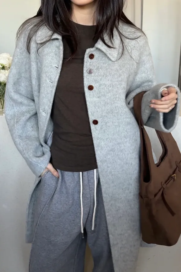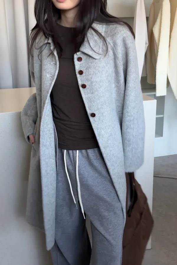 靜霧木釦羊毛大衣