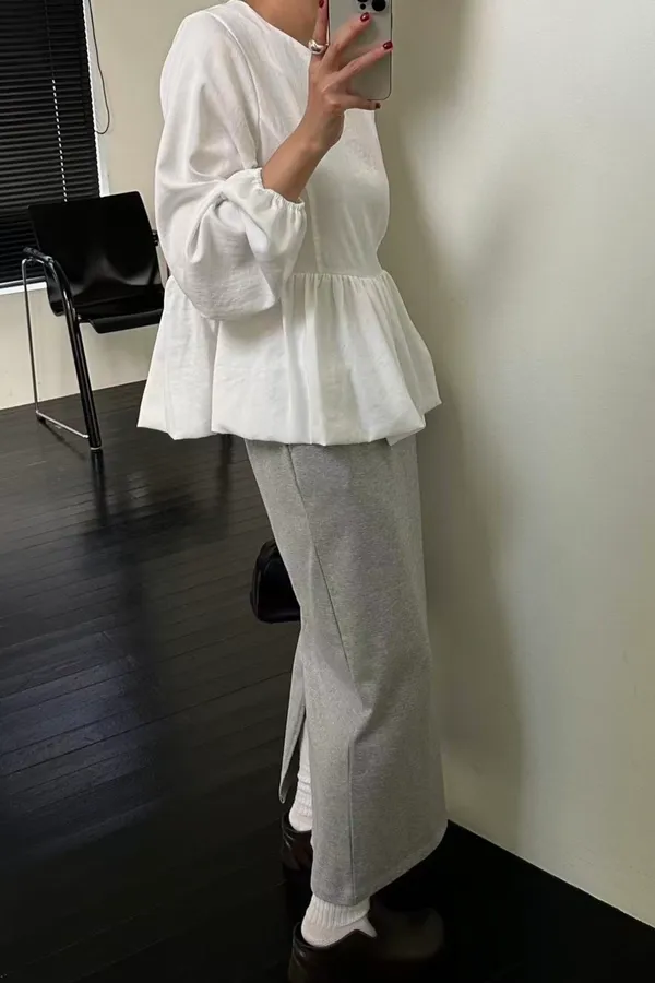霧感光澤雲朵上衣