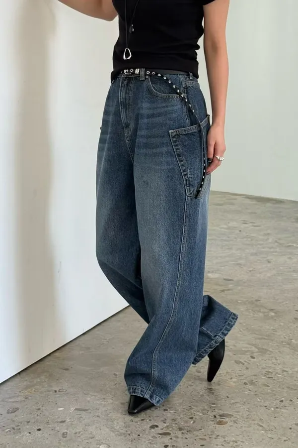 線條立體剪裁牛仔褲