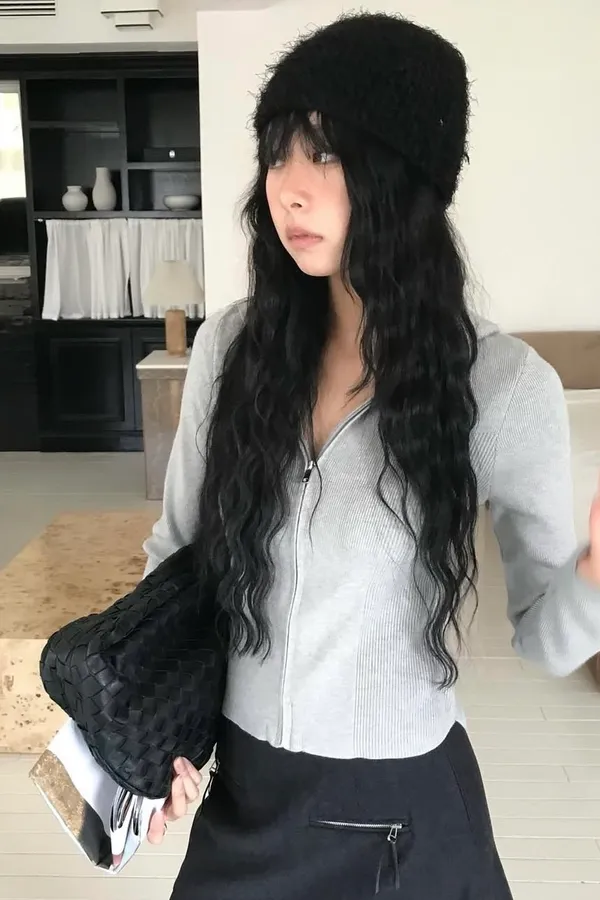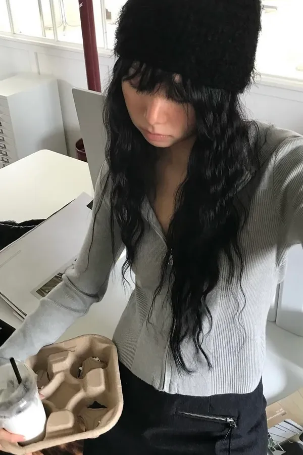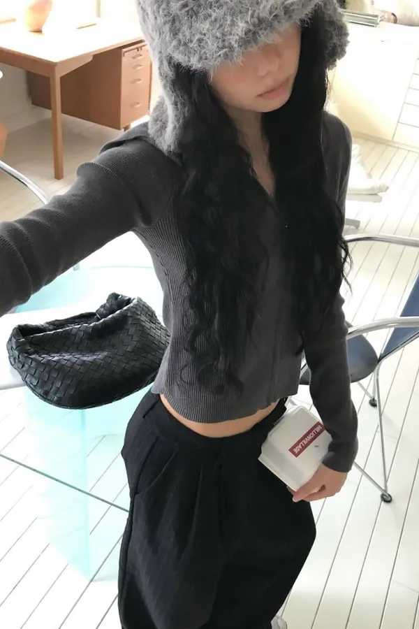 冷感柔線連帽短版針織拉鍊上衣