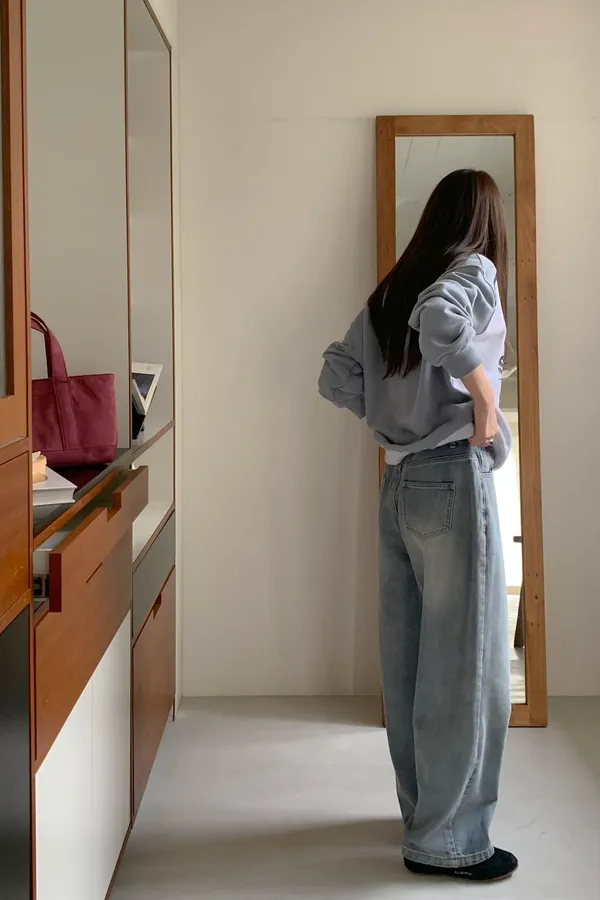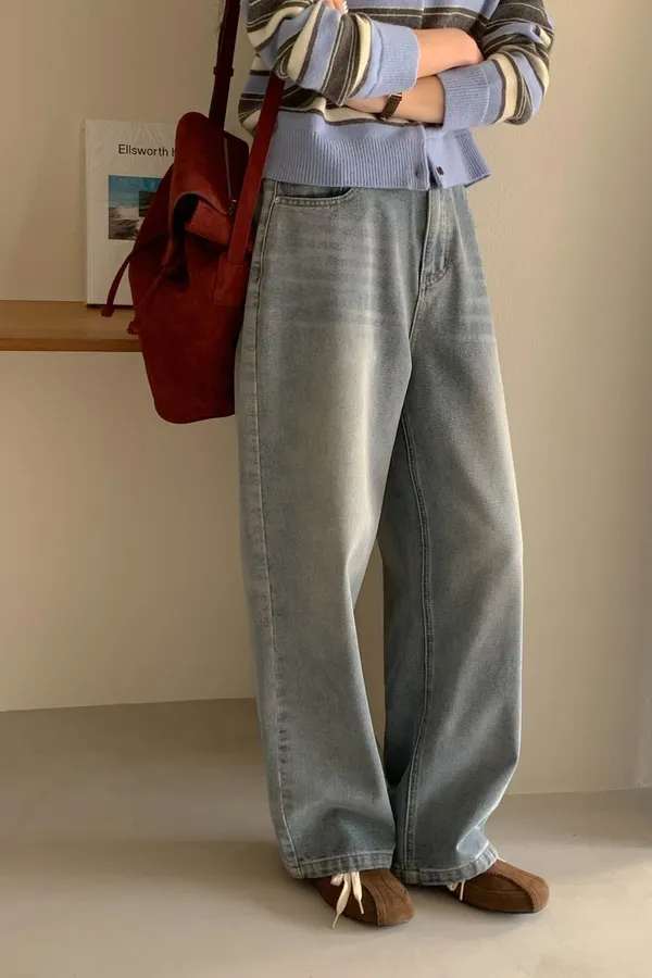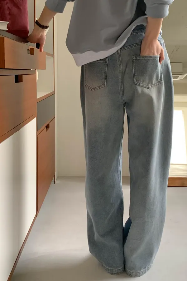 慵懶直筒走路好看牛仔褲
